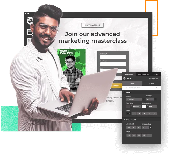 • Build mobile-friendly, tablet-friendly, and desktop-friendly landing pages